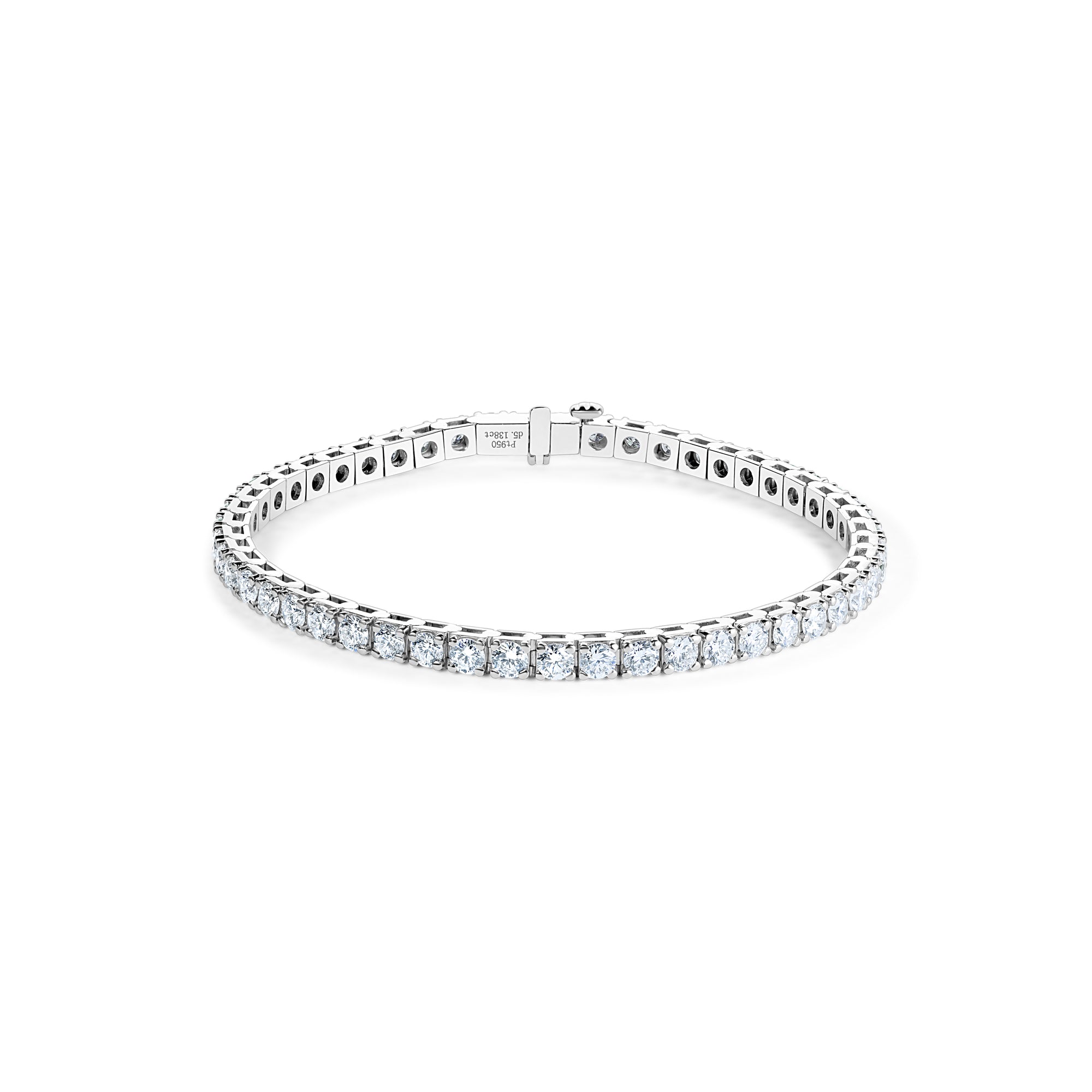 Imaginează-ți un șirag de diamante care te cucerește mereu cu strălucirea uimitoare a fiecărei pietre, de o eleganță distinsă, o piesă emblematică care îți îmbrățișează încheietura mâinii într-un șir continuu de diamante atent alese și montate cu măiestrie în Platină.