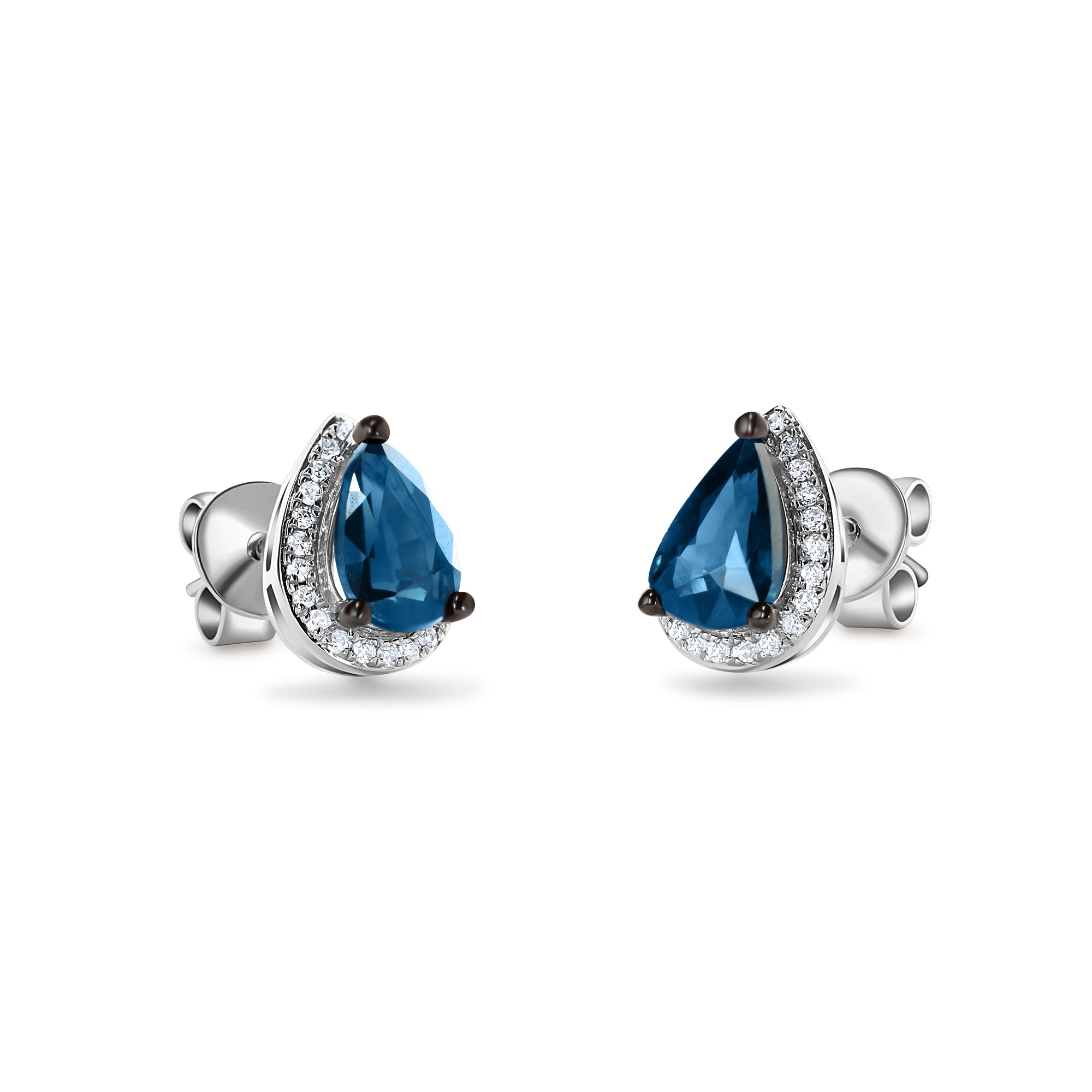 Cerceii din aur alb de 14k au în centru un safir natural de 0.54 carate fiecare, pus în valoare de 22 diamante naturale de 0.05 carate fiecare.
