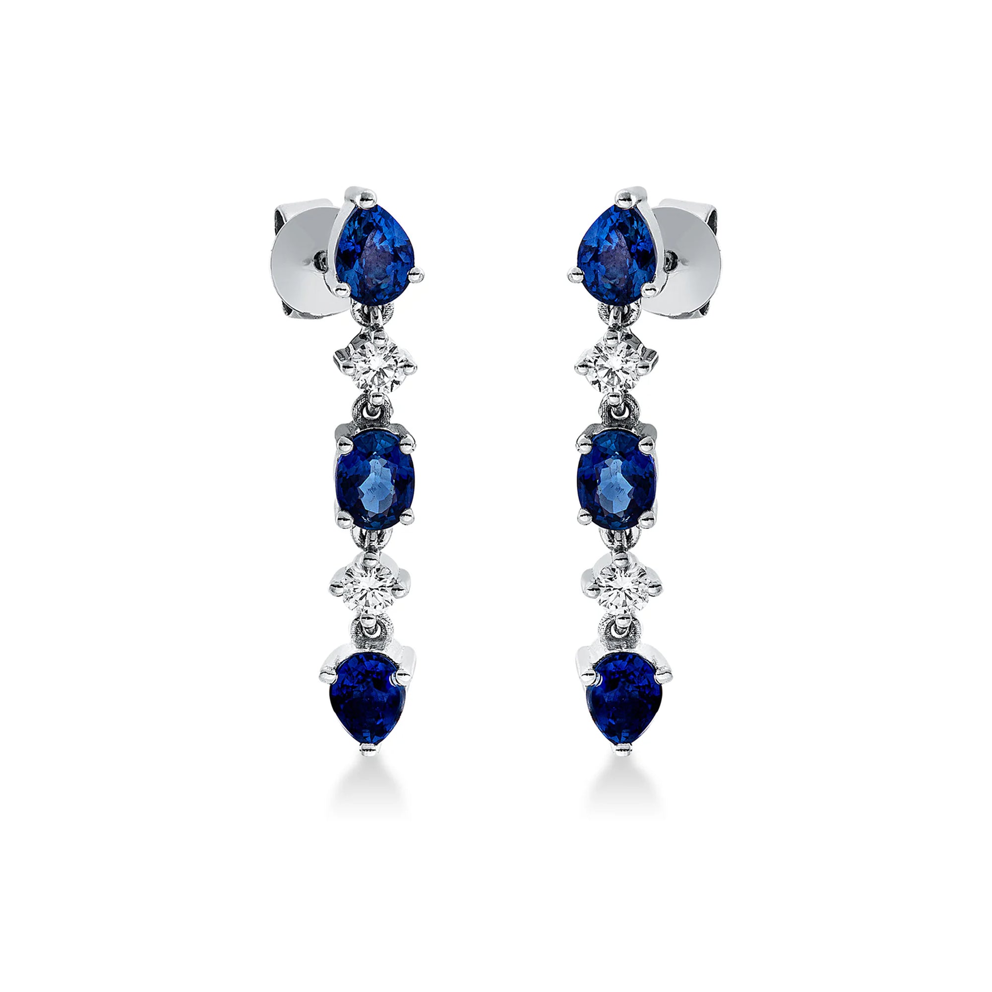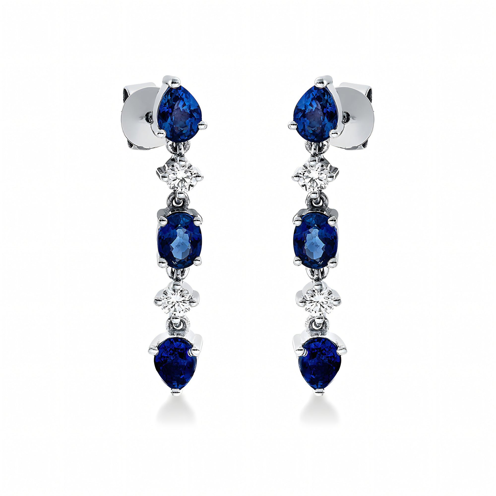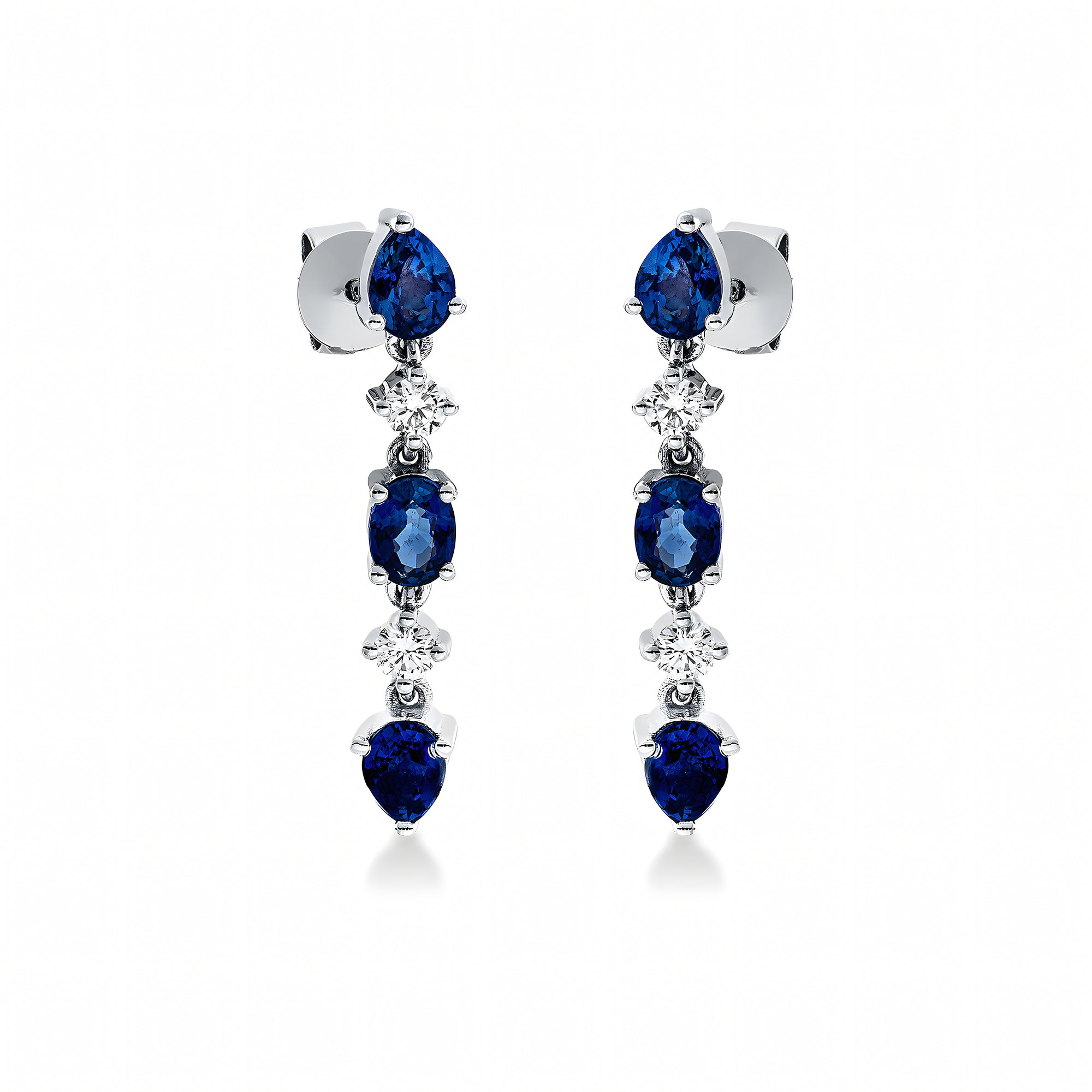 Sunt lucrați cu măiestrie în aur alb de 14K, cu 4 diamante naturale de 0.17 carate din standardul de calitate TW-SI, diamante care se joacă cu nuanțele de albastru profund ascuns în interiorul celor 6 safire naturale de 1.41 carate.