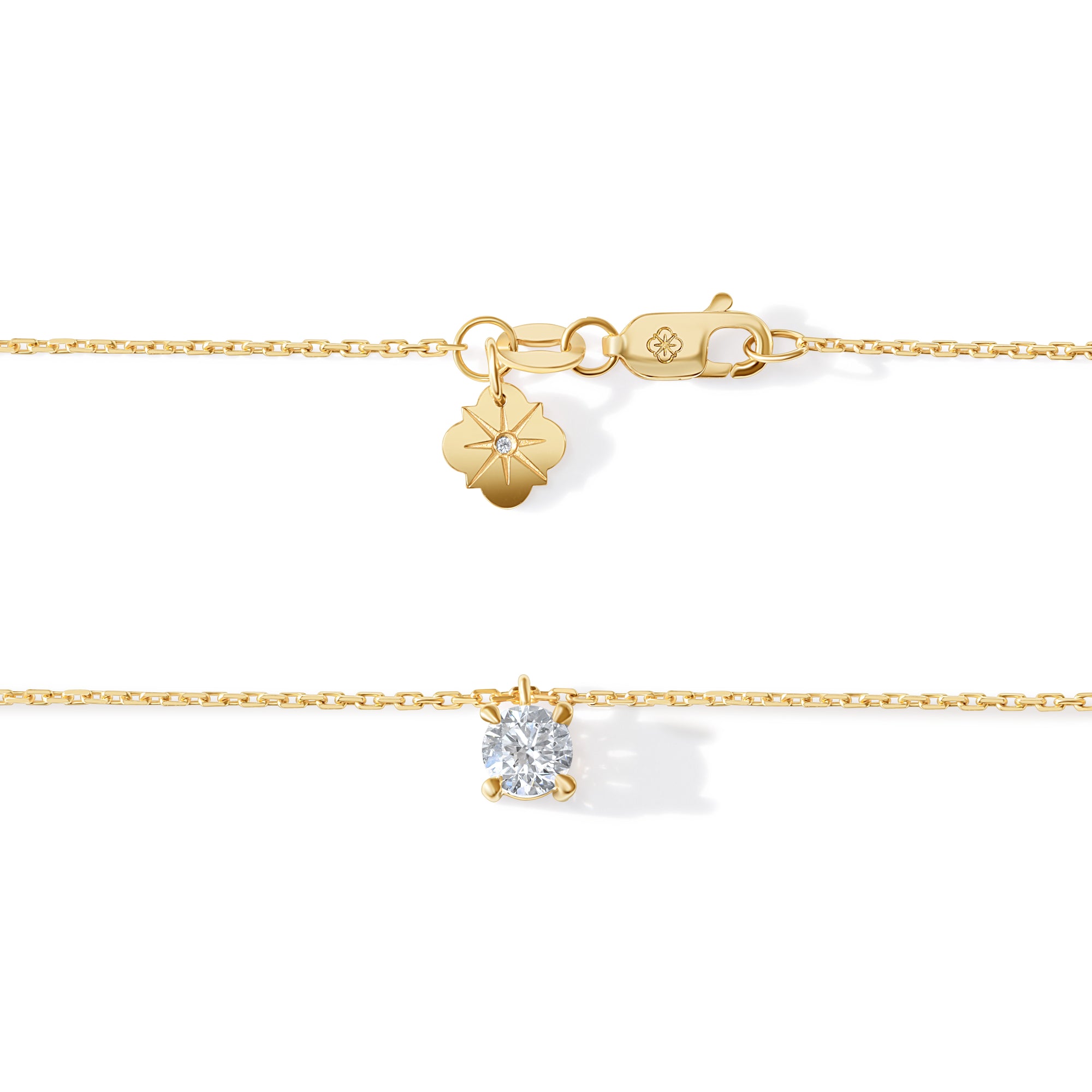 Colierul Solitaire Signature este lucrat în aur galben de 18K, cu un diamant solitaire Signature Crafted Labgrown de 0.35 carate, culoare D-E, claritate VVS-VS, tăietură Excellent cut, lungime ajustabilă 40/45 cm, cu tag personalizat cu diamant de 0.003 carate.
