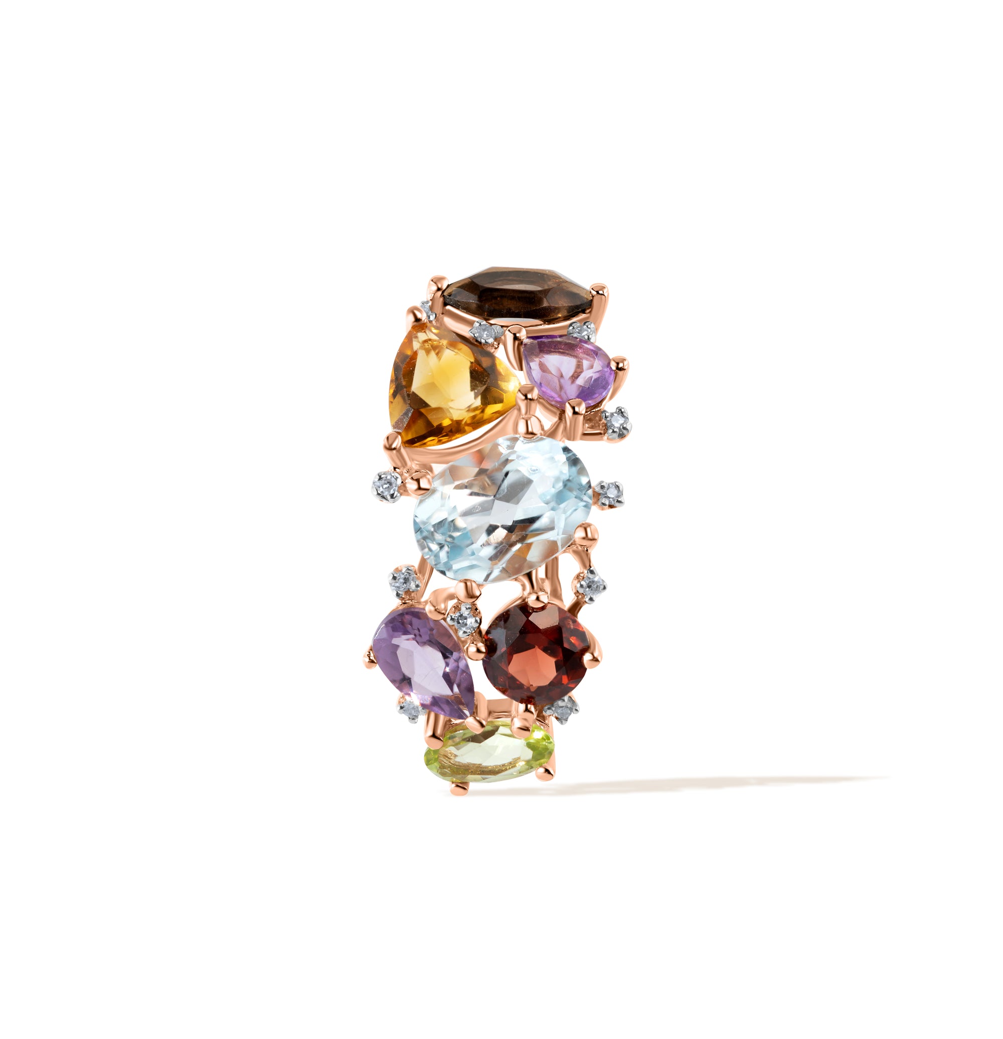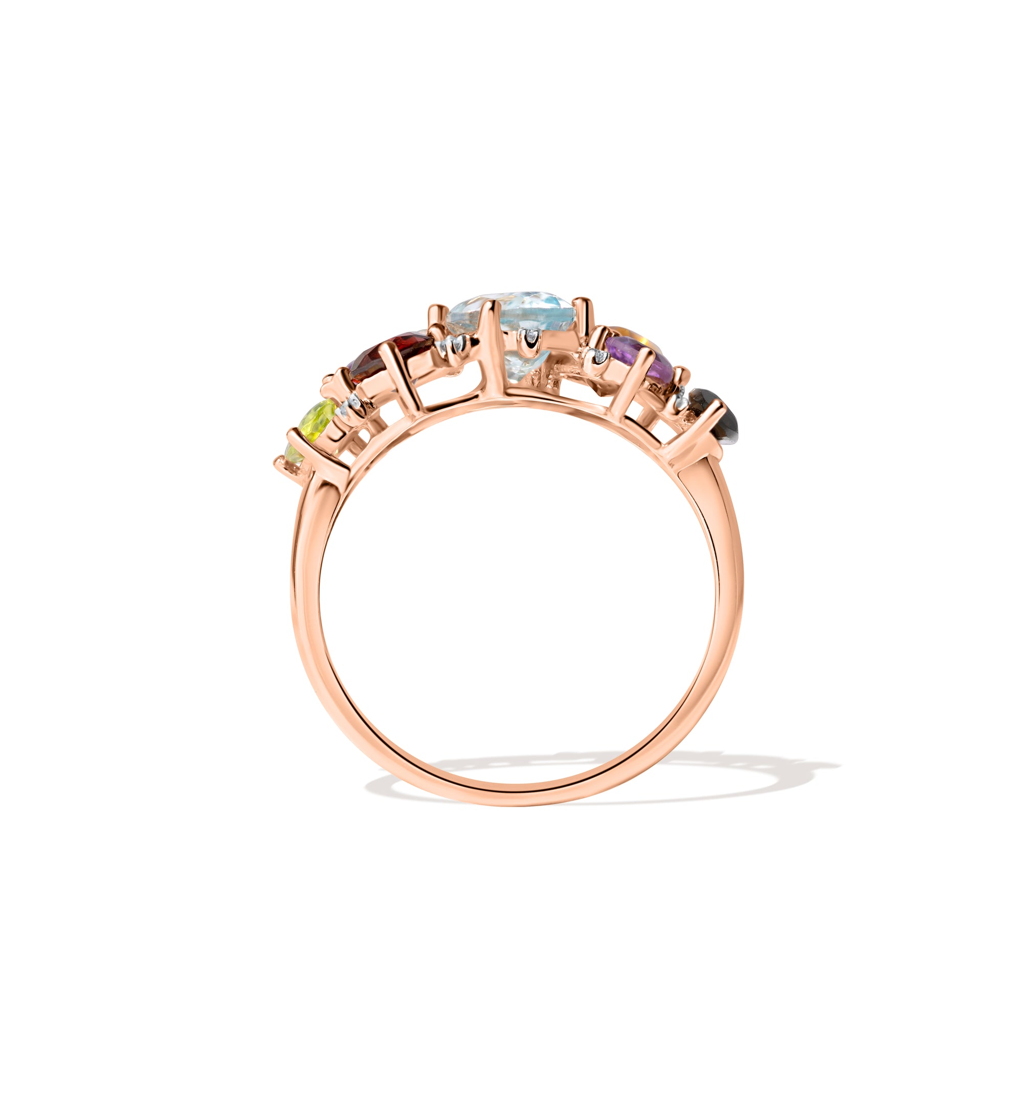 Simfonia este creată din 11 diamante naturale de 0.02 carate, 2 pietre de ametist de 0.32 carate, blue topaz sky blue de 1.3 carate, citrin de 0.46 carate, granat de 0.4 carate, peridot de 0.24 carate si cuarț fumuriu de 0.25 carate.