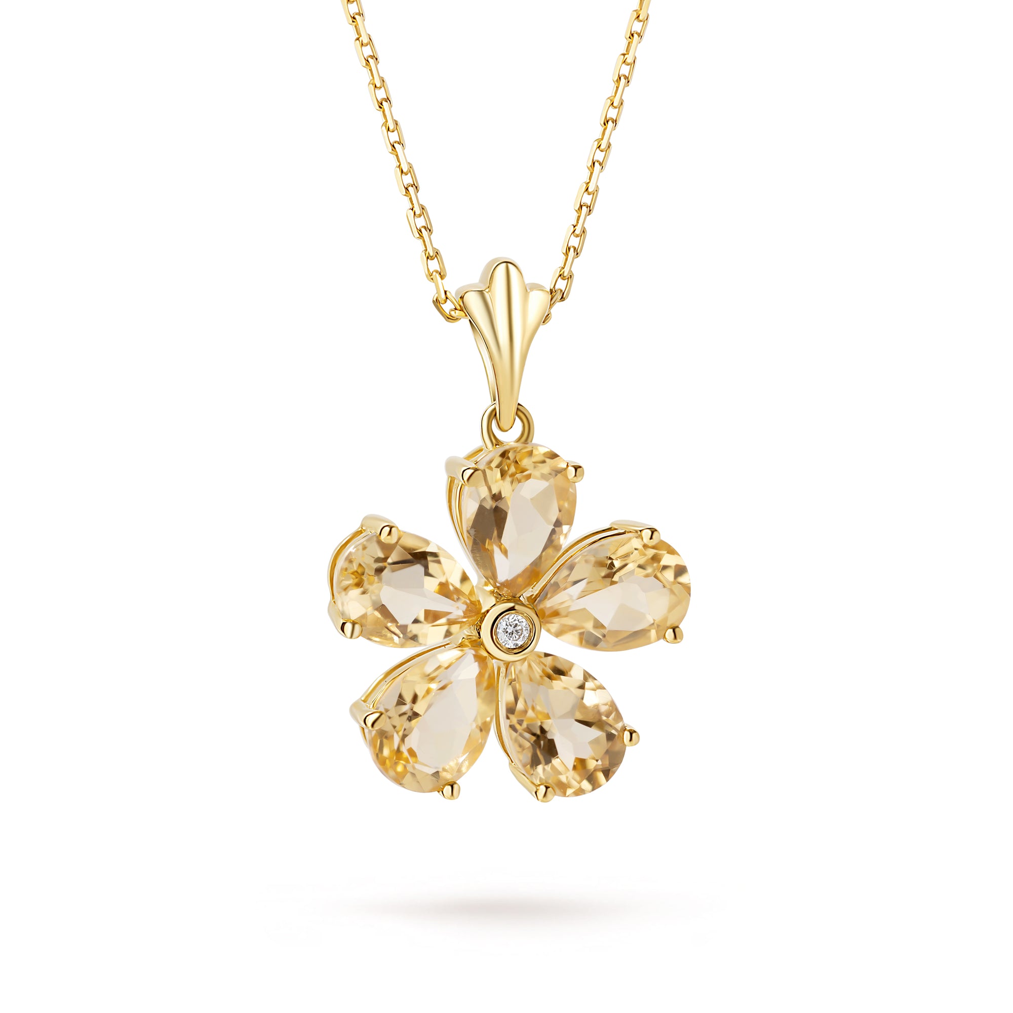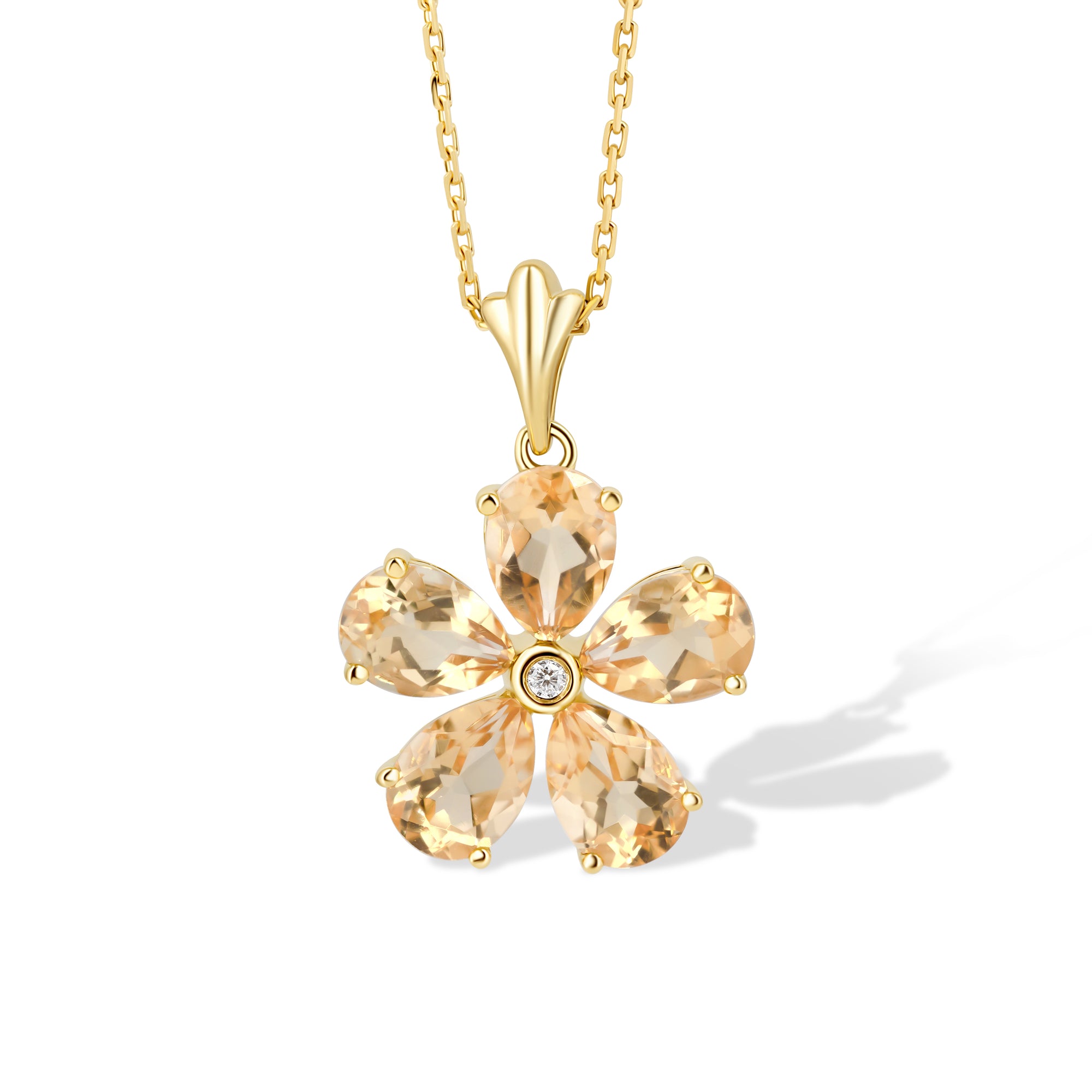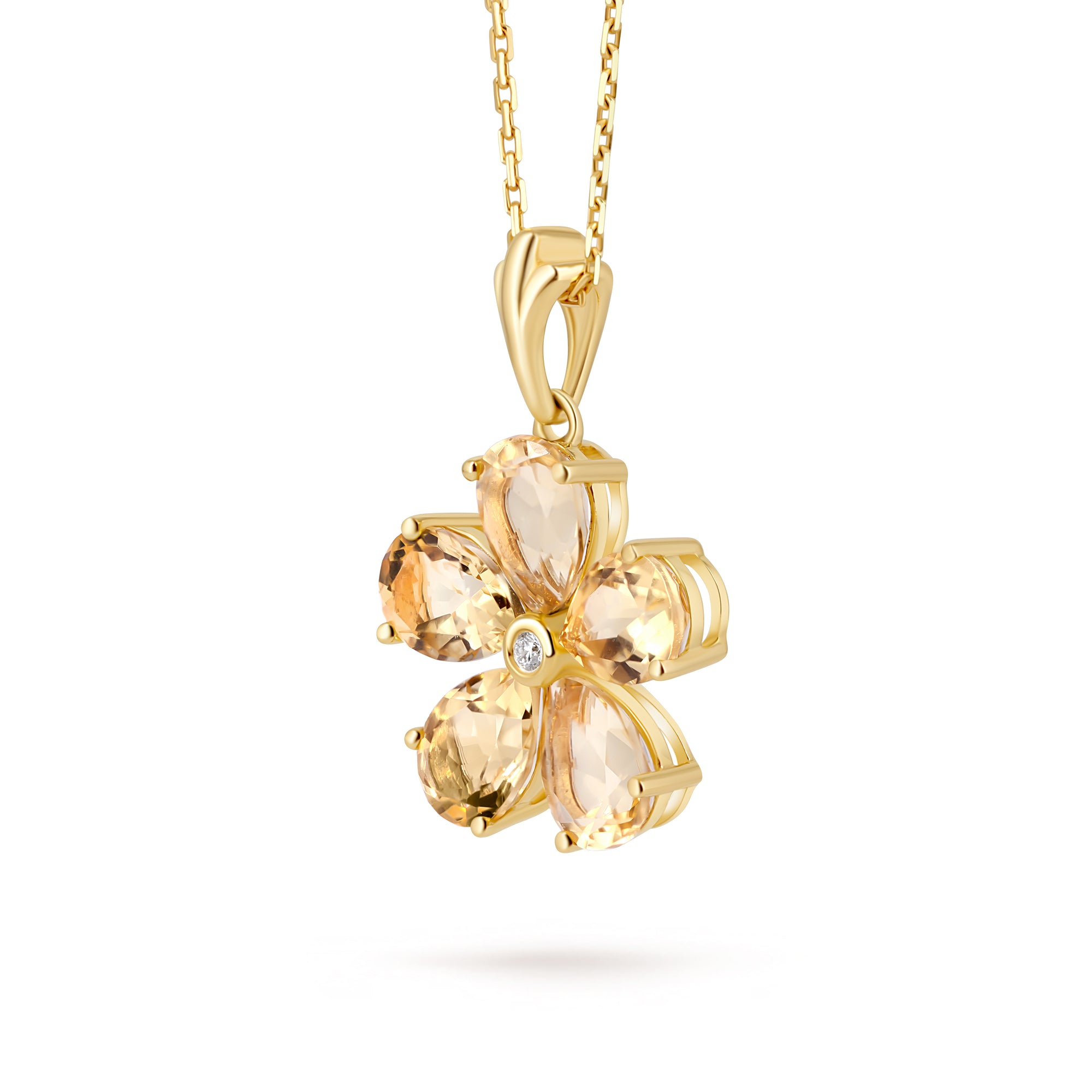 Pandantivul cu citrin și diamante naturale Jasmin de Soleil este o dedicație pentru femeile care iubesc florile și lumina caldă a soarelui și zilele lungi de vară.